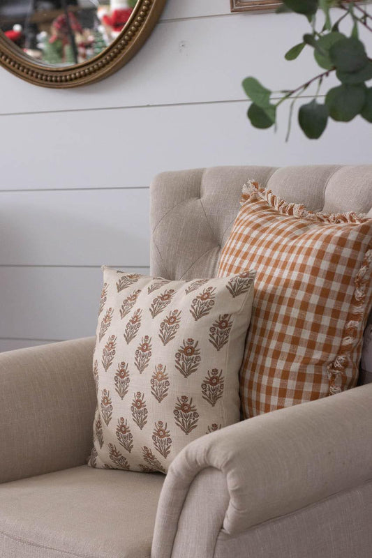Rust And Cream Check Pillow