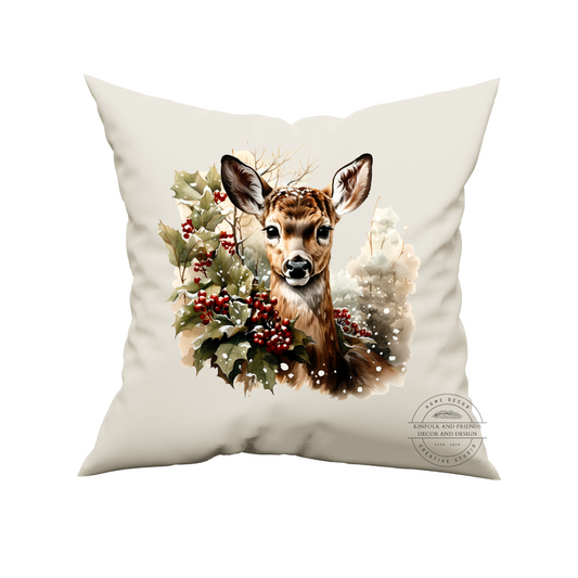 Fawn with Holly Pillow