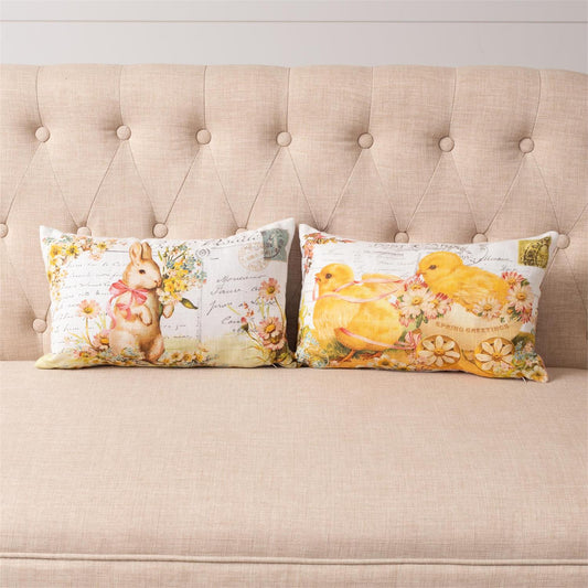 Rabbit and Chicks Vintage Postcard Pillow