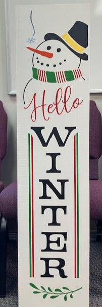 Hello Winter Porch Leaner, Winter Snowman Porch Sign