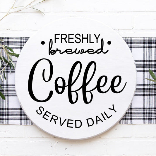 Freshly Brewed Coffee Served Daily Round Wall Sign