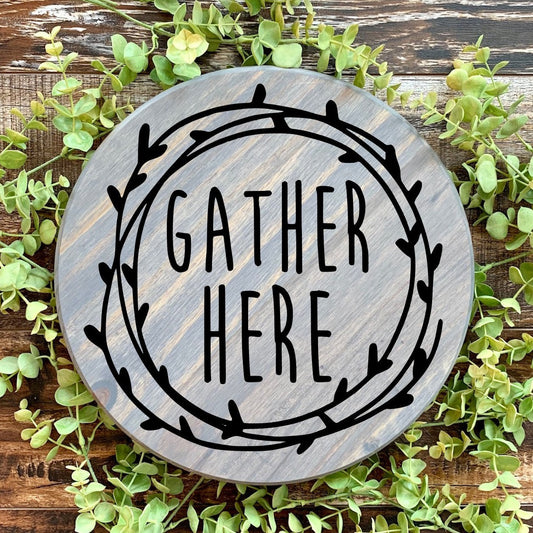 Gather Here Wood Round Wall Sign, Kitchen Wall Decor